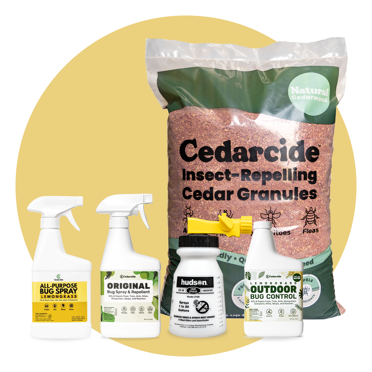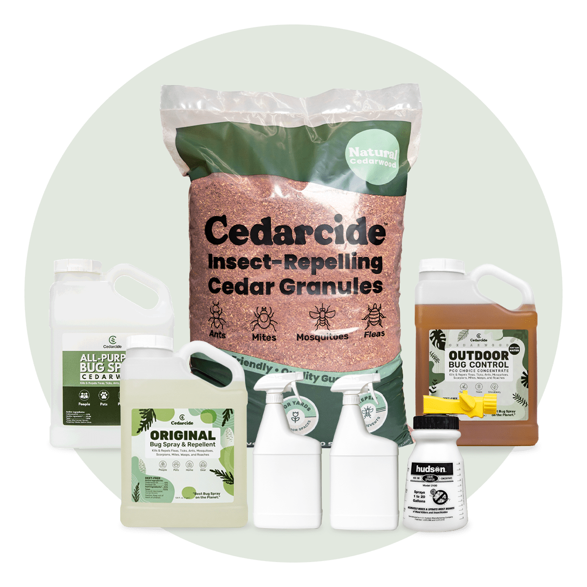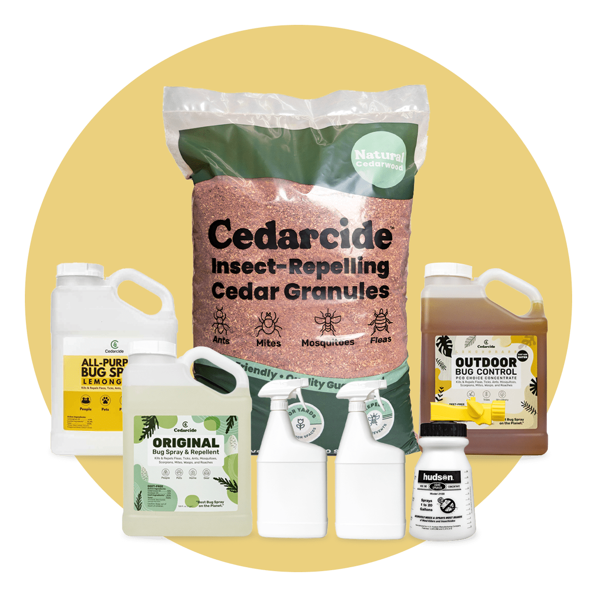 | Medium | Outdoor Bug Control (Quart), All-Purpose Bug Spray (Quart), Cedarcide Original (Quart), Cedar Granules (1 Bag) & a hose-end sprayer |