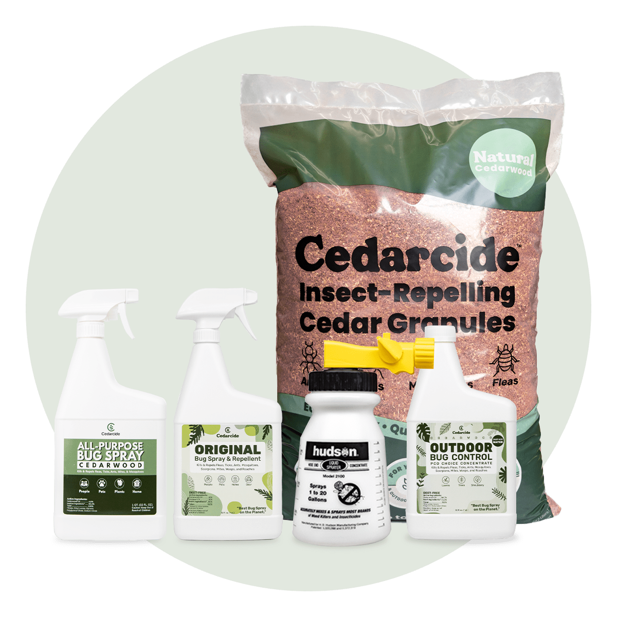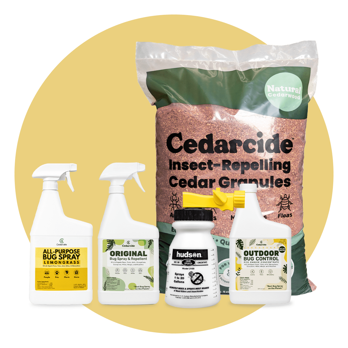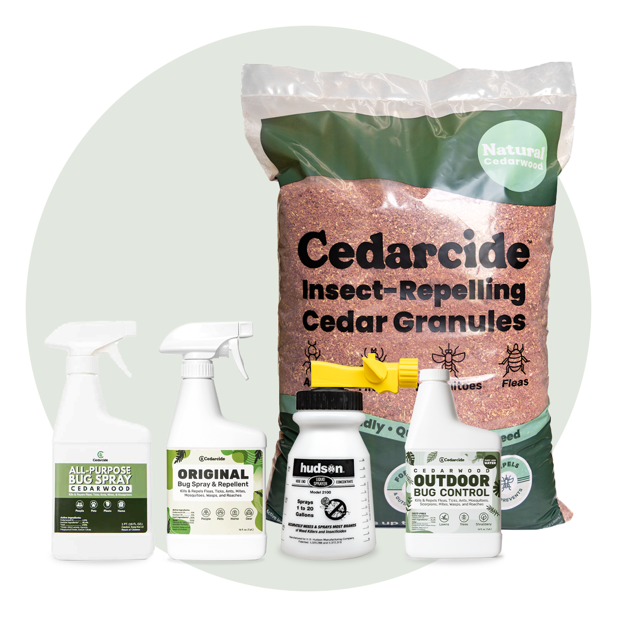 | Medium | Outdoor Bug Control (Quart), All-Purpose Bug Spray (Quart), Cedarcide Original (Quart), Cedar Granules (1 Bag) & a hose-end sprayer |