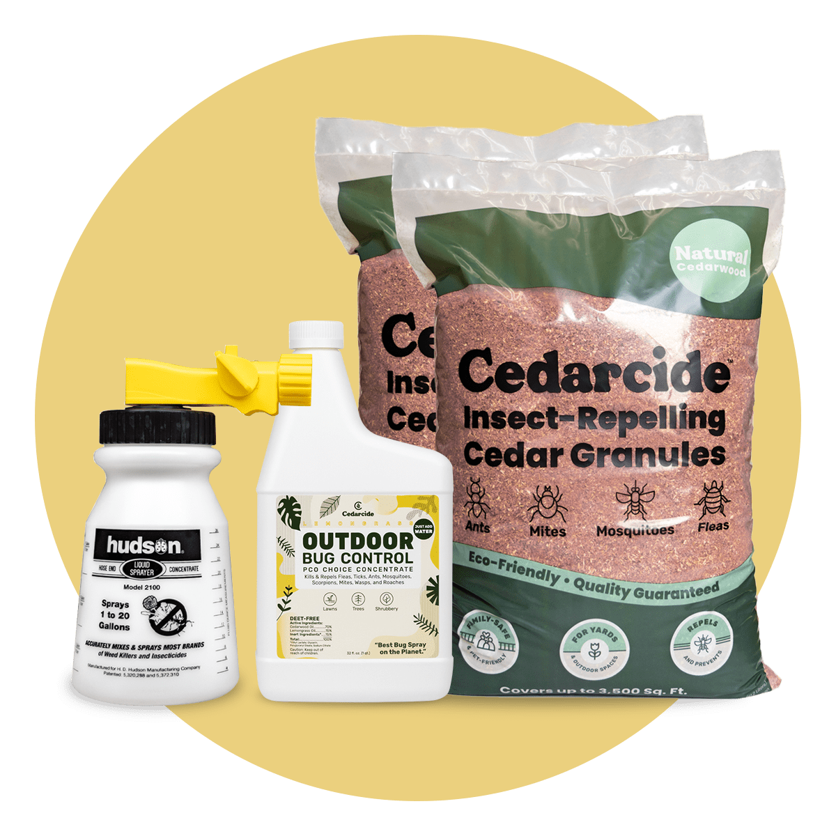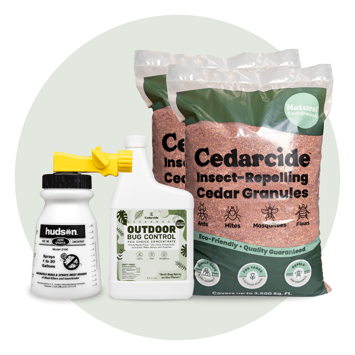 | Medium | Outdoor Bug Control (Quart), Cedar Granules (2 Bags) & a hose-end sprayer |