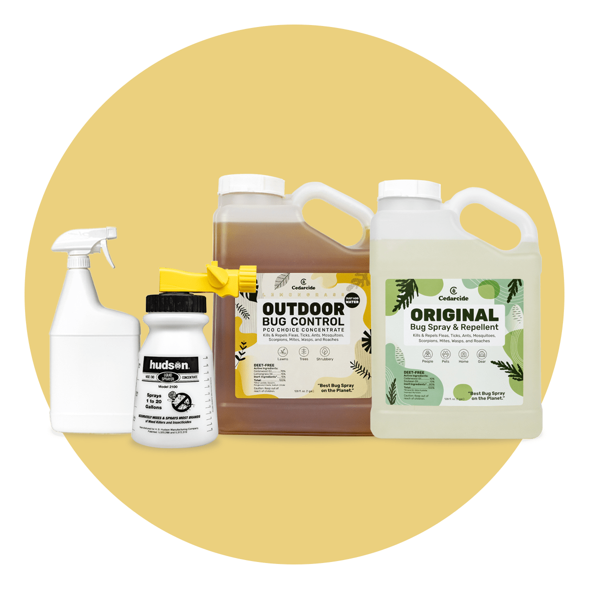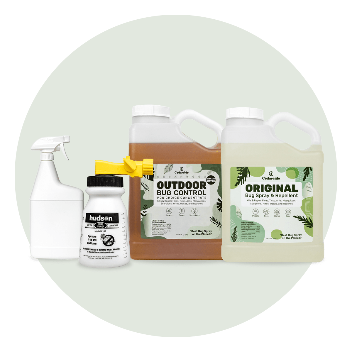 | Gallon | Cedarcide Original (Gallon), Outdoor Bug Control (Gallon) & a hose-end sprayer |