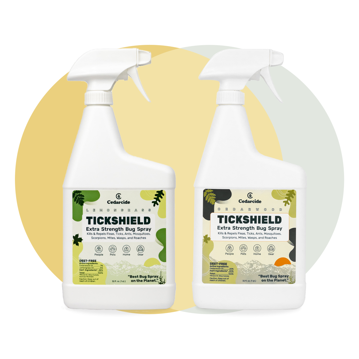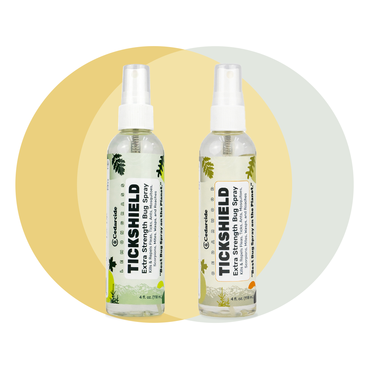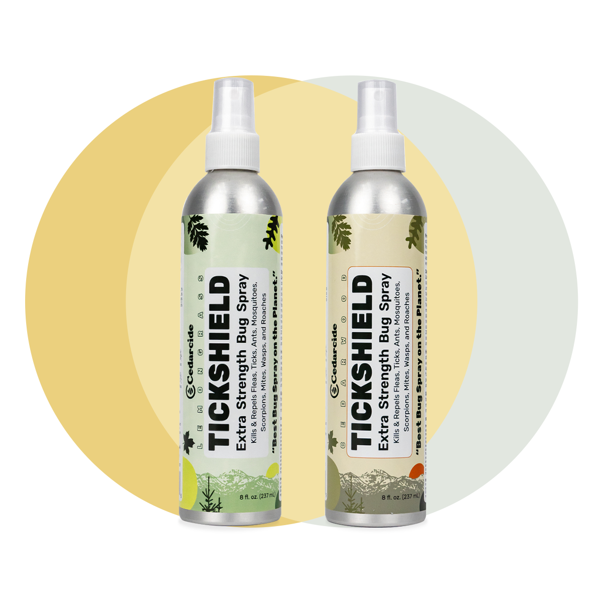 Both are equally effective at controlling unwanted bugs, so it all depends on your scent preference. Cedarwood is classic and earthy (think cedar closet or chest) and lemongrass is brighter and more citrus-like.