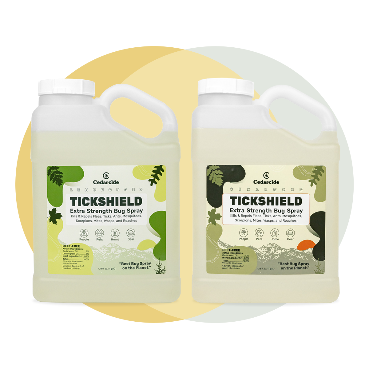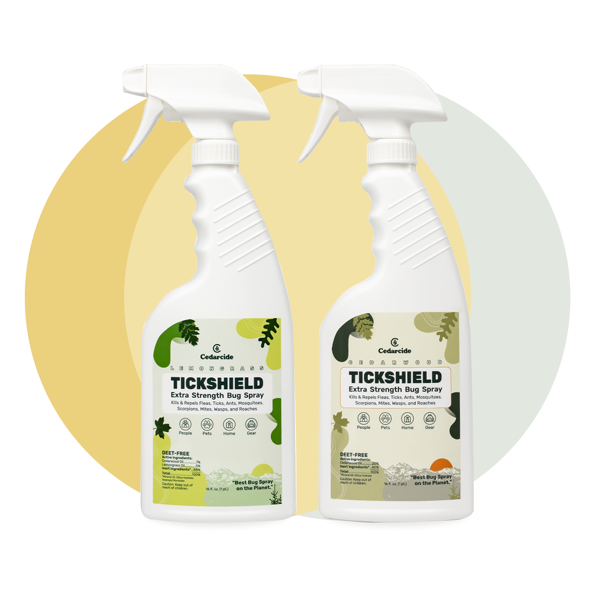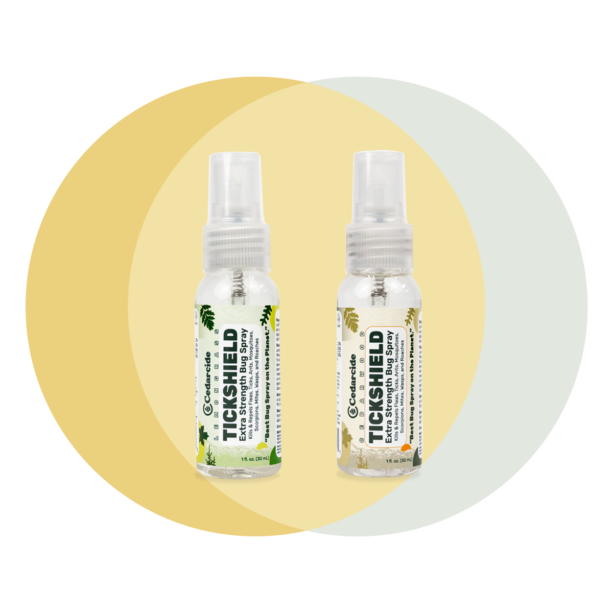 Both are equally effective at controlling unwanted bugs, so it all depends on your scent preference. Cedarwood is classic and earthy (think cedar closet or chest) and lemongrass is brighter and more citrus-like.